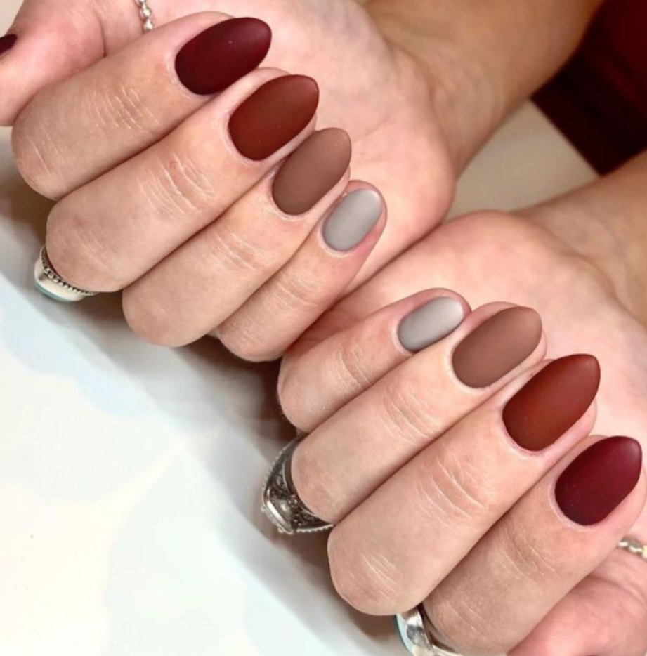 Siva boja, osobito u mat verziji, postaje sve popularnija u svijetu manikure. Ova neutralna nijansa pruža modernu, minimalističku vibru koja se savršeno uklapa u sofisticirane jesenske outfite. Od srebrno-sive do tamnijih nijansi grafita, siva je ove jeseni prava zvijezda među neutralnim tonovima.