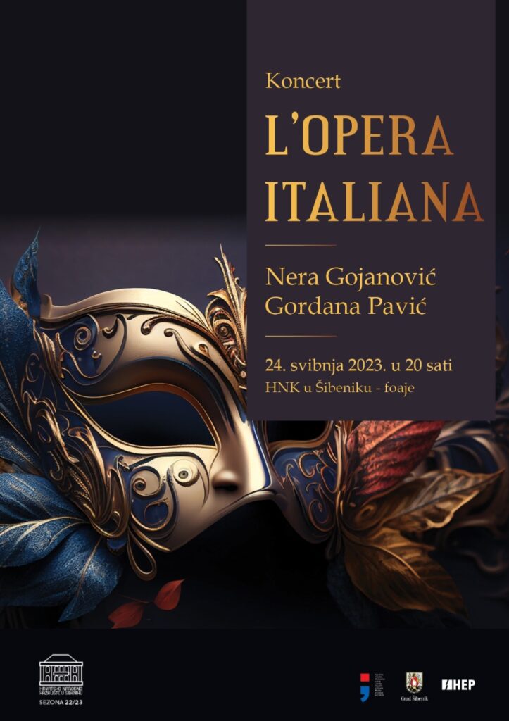 U tjednu pred nama, za kraj koncertne sezone u HNK u Šibeniku očekuje vas večer poznatih arija iz popularnih opera talijanskih skladatelja Donizettija, Cherubinija, Mascagnija, Rossinija te Menottiija u izvedbi mezzosopranistice Nere Gojanović uz klavirsku pratnju pijanistice Gordane Pavić.