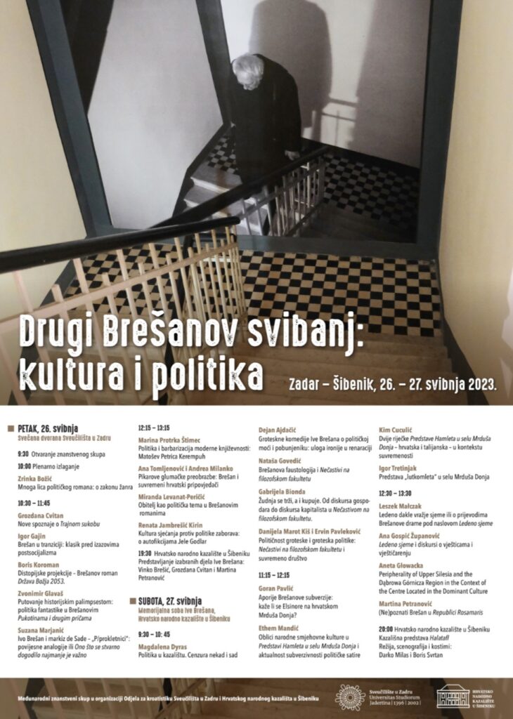 U povodu 87. obljetnice rođenja velikana hrvatske književnosti Ive Brešana, HNK u Šibeniku u suradnji s Odjelom za kroatistiku Sveučilišta u Zadru organizira međunarodni znanstveni skup pod nazivom „Drugi Brešanov svibanj: kultura i politika“. Skup će se održati 26. i 27. svibnja na relaciji Zadar – Šibenik.
