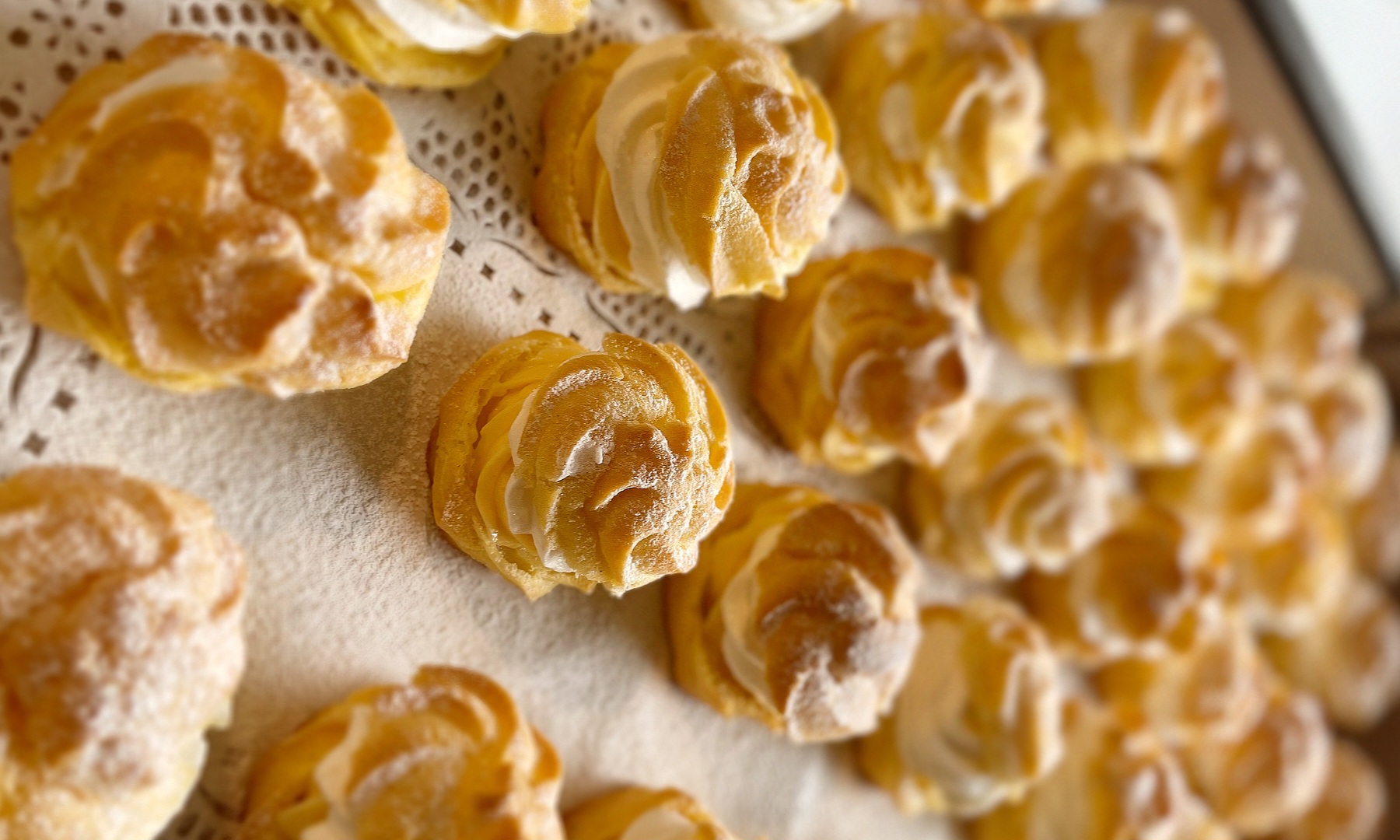 Priprema tijesta: U posudi umutite jaja i šećer dok smjesa ne postane svijetla i pjenasta. Zatim dodajte ulje, mlijeko i vanilin šećer te sve dobro izmiješajte.