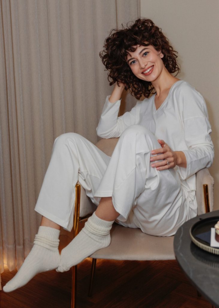 Delminium je bijeli lounge set inspiriran mirom i povlačenjem unutra. Mekan komplet koji prati pokret bez ograničenja i nosi ton jutarnje svjetlosti, bijelog papira i svježe posteljine. Idealan je za dane kad vani sniježi, a izabrali bi toplinu. Jednako prirodan kod kuće i na ulici, kad udobnost postane osobni stil. Delminium nije samo komplet, to je stanje uma i način postojanja u zimi.