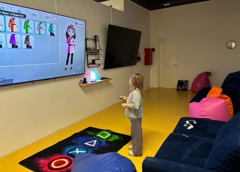 Nova igraonica raspolaže brojnim atrakcijama, među kojima se ističu jedan od najboljih zidova za penjanje u regiji, veliki game room s PlayStationom i Nintendom, najveći šah u gradu, bogati LEGO kutak, logičke igre i mozgalice te razne motoričke aktivnosti poput boksa, streljaštva i tobogana. Poseban dio prostora čine mini ljekarna i mini veterinarska stanica, zamišljene kao poticajno okruženje u kojem djeca uče o empatiji, brizi za druge i osnovama zdravstvene i životinjske zaštite. Cijeli koncept igraonice razvijen je uz poseban naglasak na mentalno zdravlje djece, osjećaj sigurnosti i poticanje suradnje, kreativnosti i samopouzdanja.