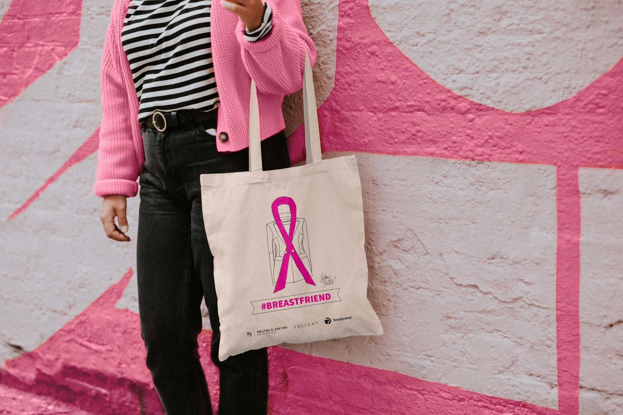 Odlična inicijativa Tekstilprometa ne prestaje ovdje, već se nastavlja tijekom čitavog listopada. U suradnji s poznatim dizajnerom, Ivanom Friščićem, koji stoji iza domaćeg modnog brenda Delight Luxury, tvrtka Tekstilpromet kao simbol podrške oboljelima, pokrenula je inicijativu prodaje posebno oblikovane platnene torbe na kojoj se nalazi ružičasta vrpca, simbol borbe protiv raka dojke. Svi oni koji žele sudjelovati i pomoći oboljelima, torbu će moći kupiti u svim trgovinama Tekstilprometa i putem web trgovine, a sav prihod od prodaje bit će doniran udruzi Europa Donna Hrvatska.